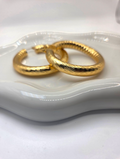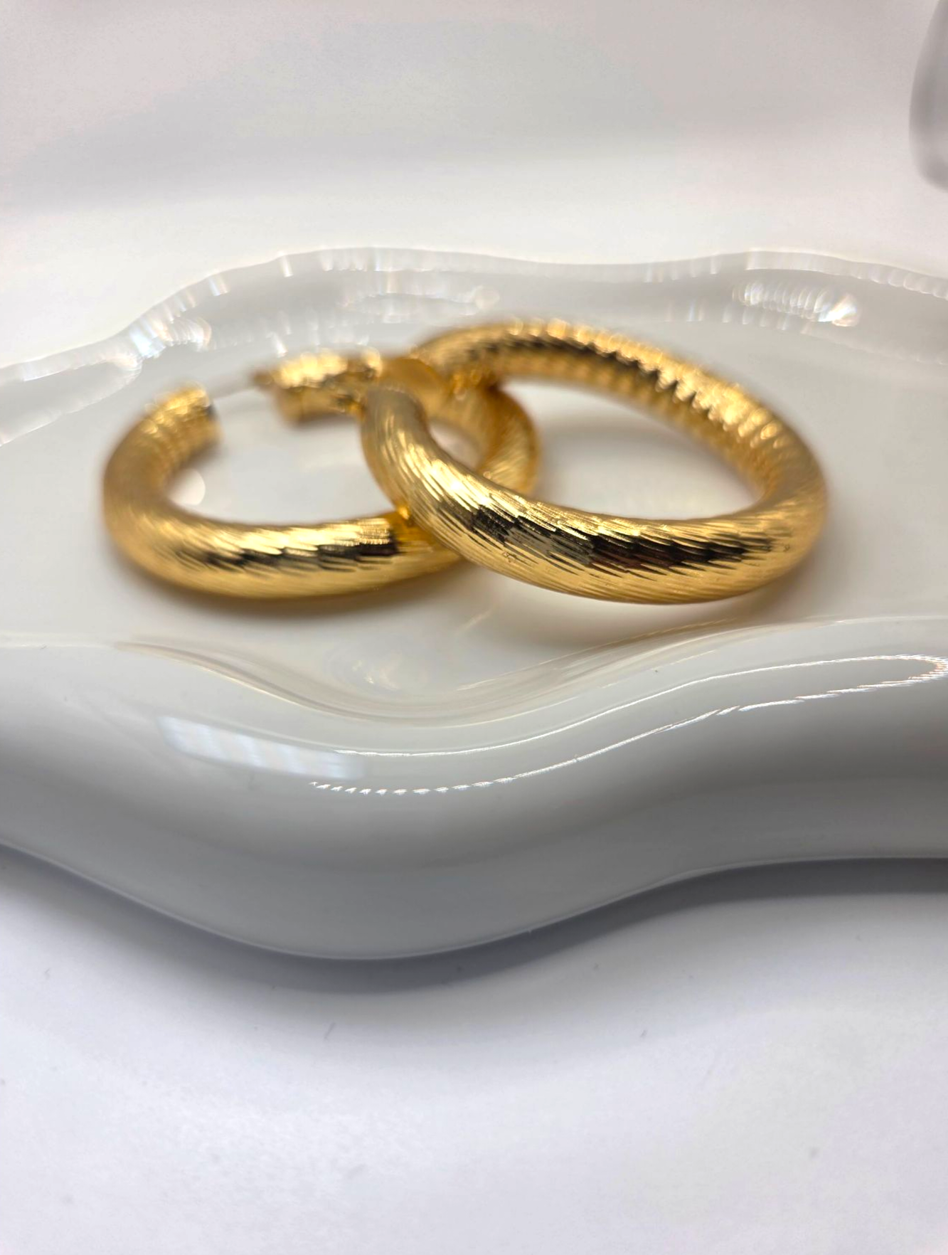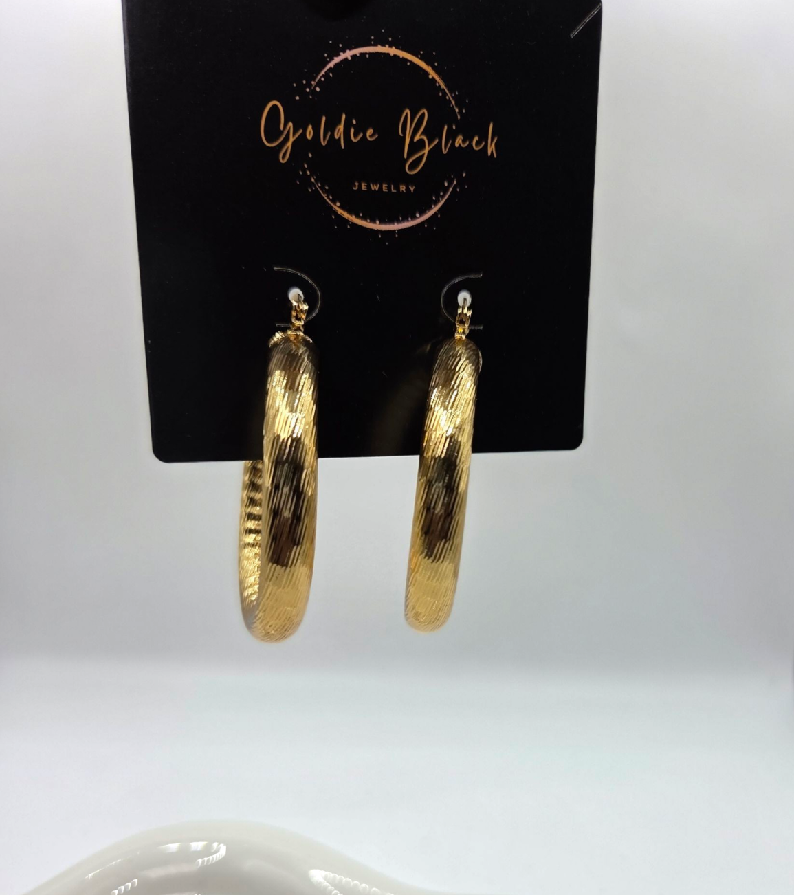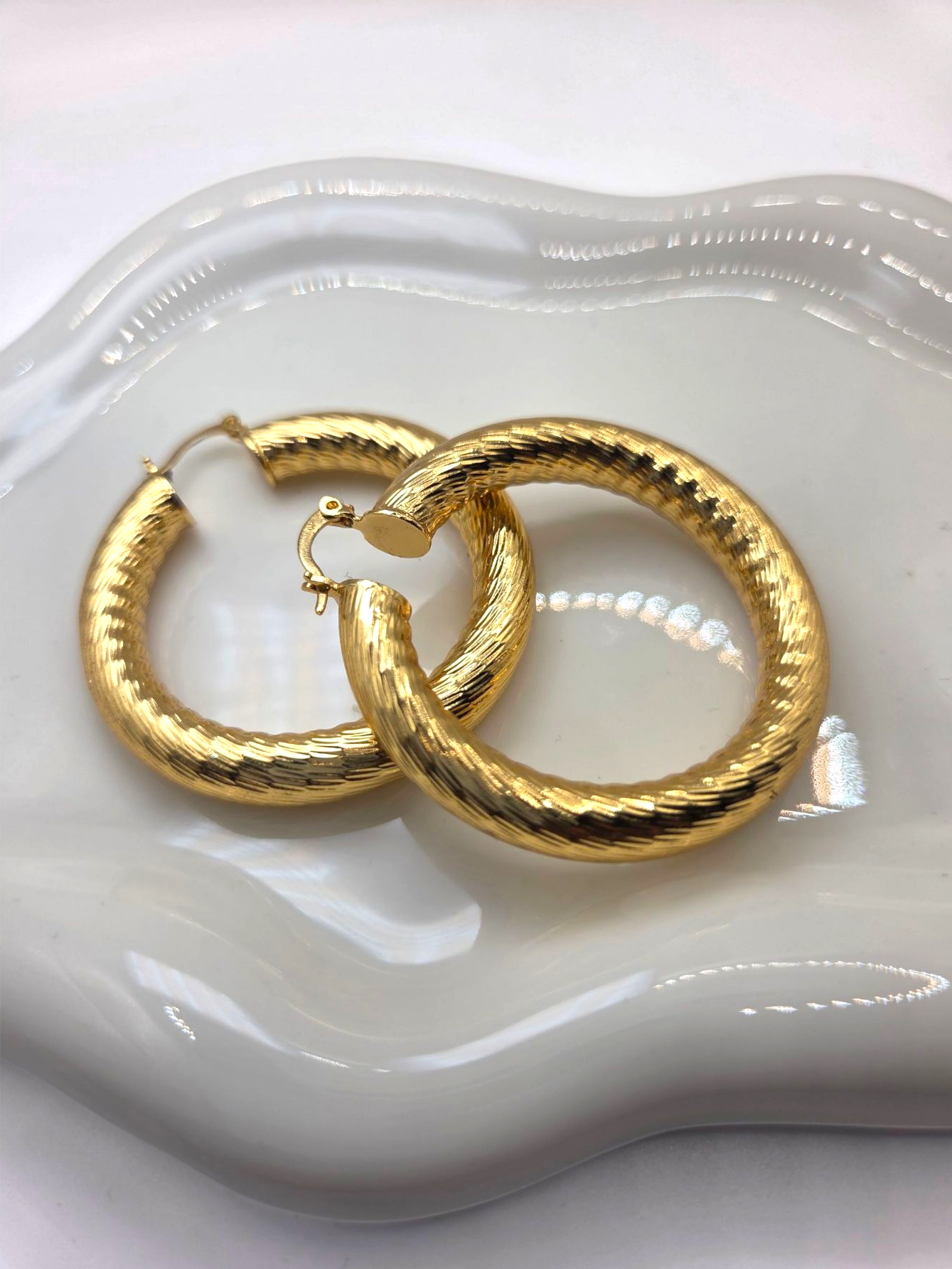 Designed with a shimmering finish that catches the light beautifully. The classic hoop design is elevated with a touch of glamour, making these earrings perfect for any occasion.