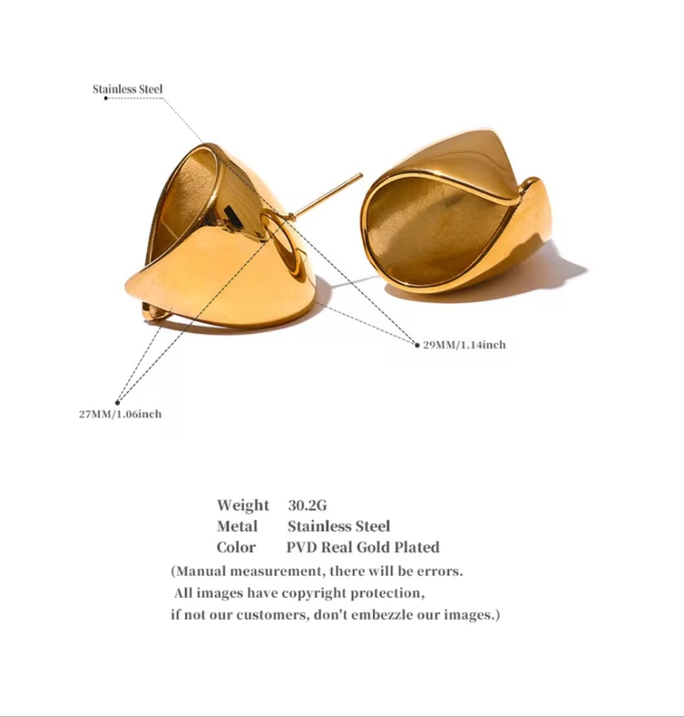 A perfect blend of confidence and elegance. Designed with a sleek round shape and subtly tapered ends, these studs make a bold yet timeless statement. Crafted with 18K gold plating, they shine effortlessly, adding the perfect touch of luxury to your everyday look. Whether worn solo or paired with other favorites, these earrings are made to empower and enhance your confidence.
